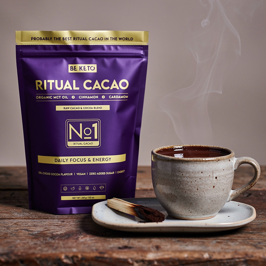 Chez BeKeto, nous combinons tradition cérémonielle et fonctionnalité cétogène – notre cacao contient de l'huile MCT biologique soutenant la cétogenèse et des champignons adaptogènes (Reishi, Lion's Mane, Cordyceps) à une concentration de 4:1, ce qui signifie que chaque portion fournit l'équivalent de 4 fois la quantité de champignons frais.